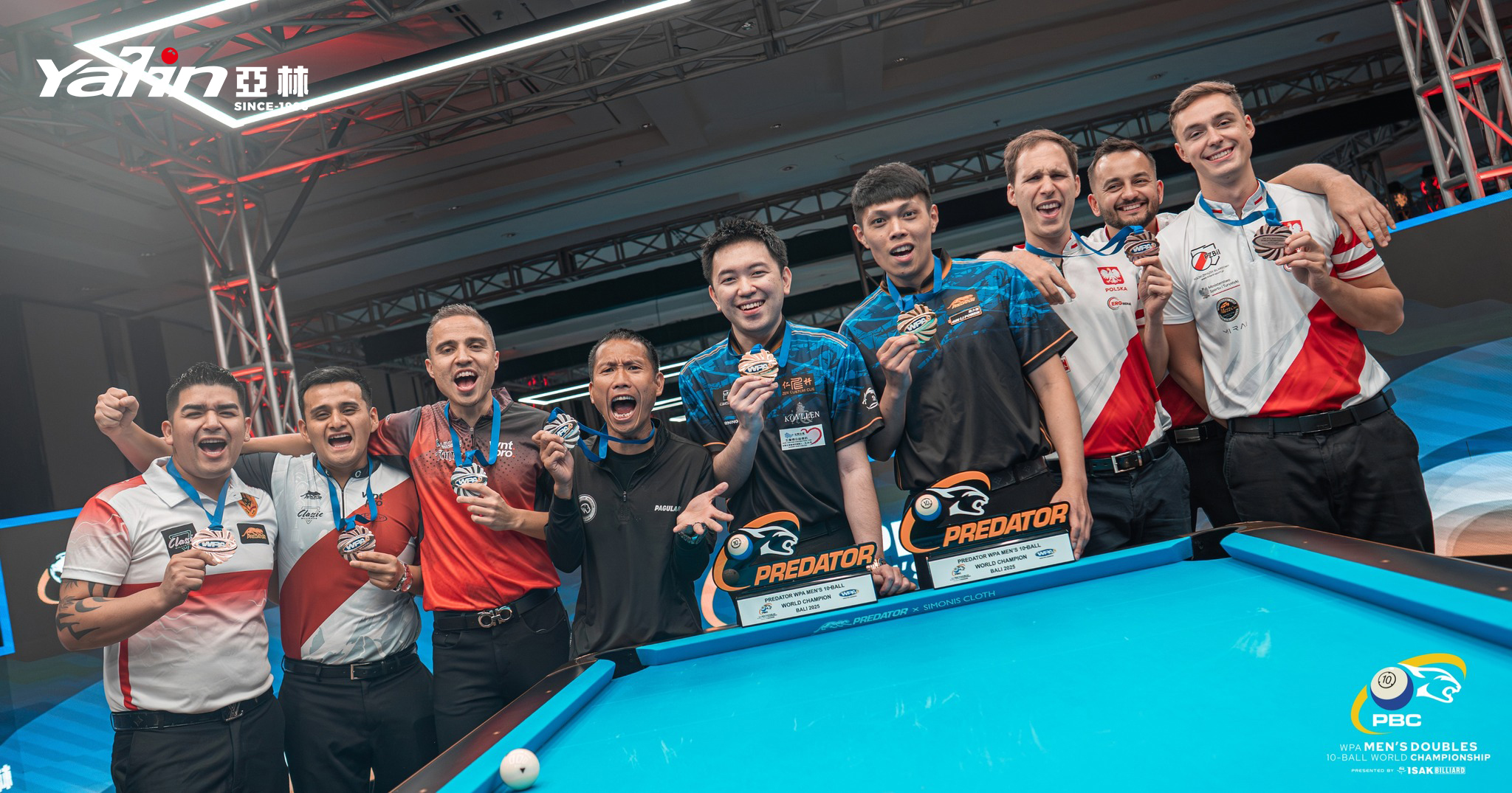 决赛战况:决赛进程中,中华台北队从开场便占据主动。首局比赛,加拿大队频繁出现失误,吴坤霖与谢佳臻则凭借精准的定杆与精妙的走位迅速建立优势,先拔头筹。面对落后局面,加拿大名将亚历克斯·帕古拉扬与约翰·莫拉在后两局试图调整战术反击。